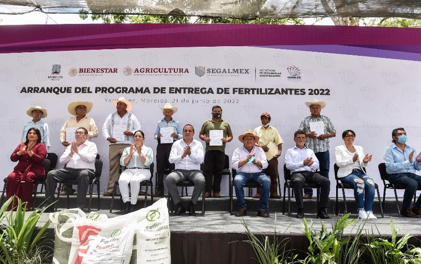 Sin duda con el programa de Fertilizantes para el Bienestar, que el gobernador ha tenido a bien gestionar con el presidente de la república, Andrés Manuel López Obrador, que por tercer año consecutivo llegue a nuestra entidad, y este año no será la excepción, en 2022, cerca de seis mil productores fueron beneficiados con la finalidad de contribuir a mejorar el rendimiento e ingresos de los productores de pequeña escala de cultivos de maíz y arroz en el estado de Morelos.