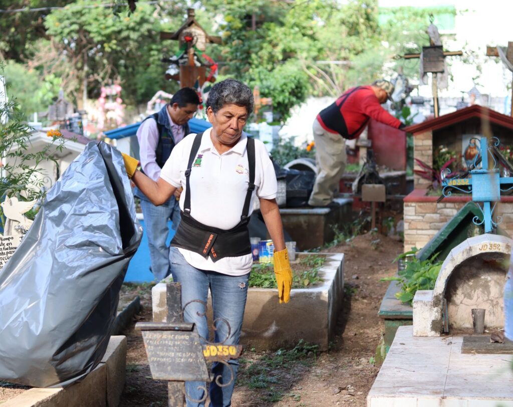 El alcalde Rafael Reyes realizó, la mañana de este martes, un recorrido por el panteón de la colonia Centro para supervisar los trabajos de limpieza y descacharrización que se llevan a cabo en los nueve cementerios del municipio, con el objetivo de tenerlos en las mejores condiciones para el próximo Día de Muertos (1 y 2 de noviembre).