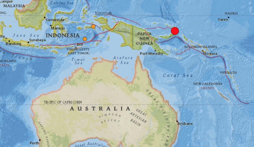Fuerte sismo al oriente de Papúa Nueva Guinea M7.5 (USGS).