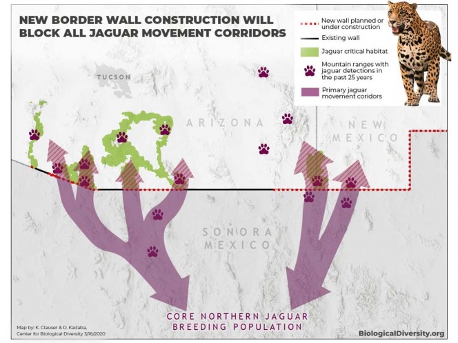 «La construcción de un muro que atraviesa el corazón de refugios, bosques y áreas protegidas tendrá efectos devastadores en la vida silvestre, como jaguares, lobos y ocelotes mexicanos, que llaman hogar a la frontera», advirtió el director ejecutivo del Fondo de Defensa Legal Animal, Stephen Wells.