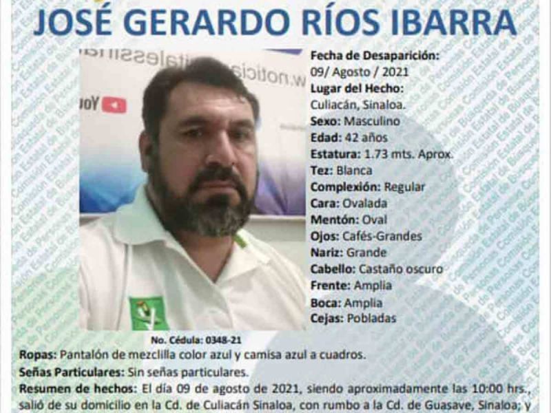 Luego de haber permanecido seis días en calidad de desaparecido, José Gerardo Ríos Ibarra, dirigente estatal del Partido Verde en Sinaloa, fue liberado por sus captores, en perfecto estado de salud.