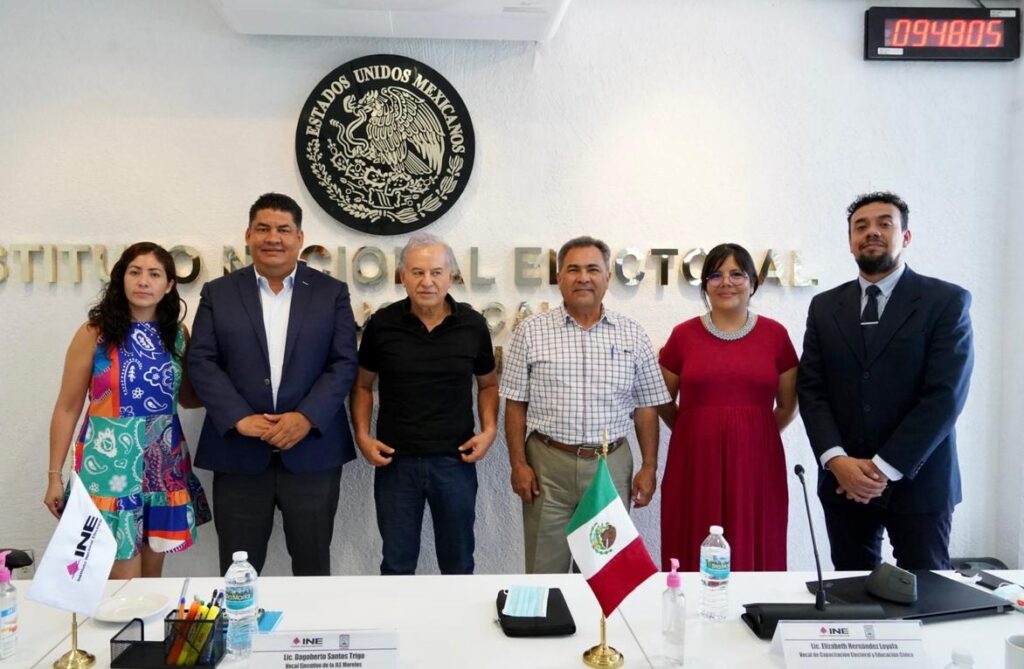 El delegado del INE estuvo acompañado por Elizabeth Hernández Loyola, vocal de Capación Electoral y Educación Cívica de la Junta Local Ejecutiva, así como el encargado de Despacho de la Vocalía de Organización, Aarón Enrique Jaramillo González.