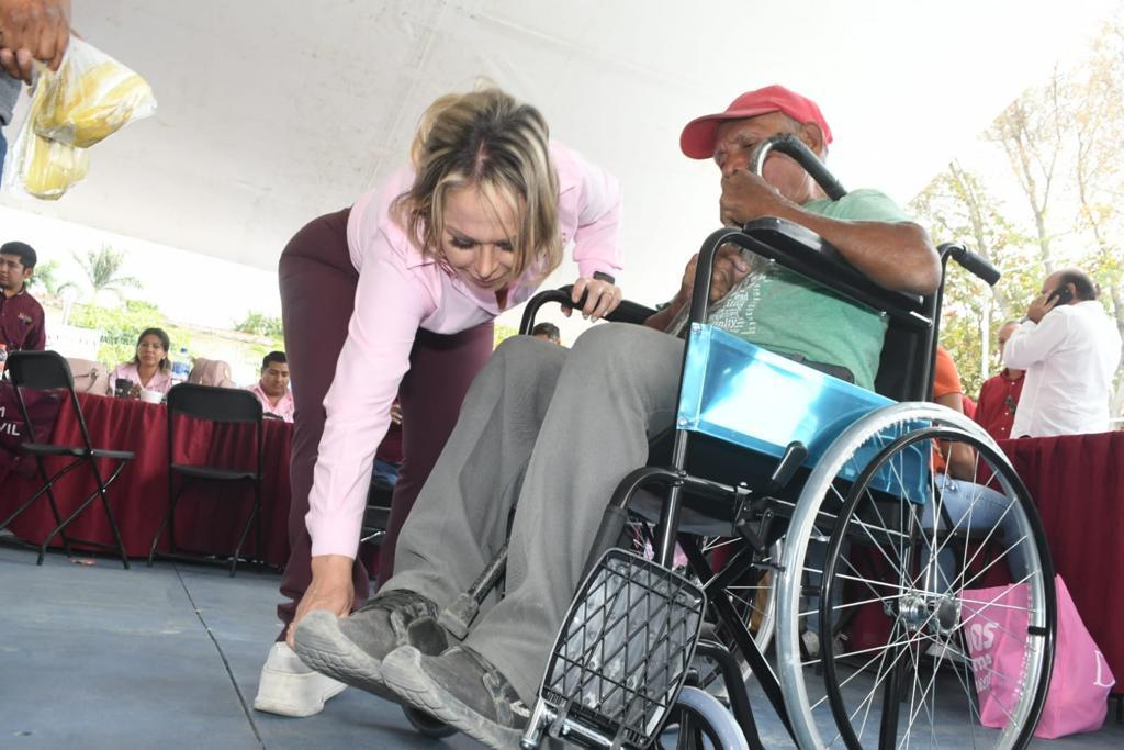 Por su parte, la presidenta del SMDIF, Araceli García Garnica entregó sillas de ruedas a Emma Pinzón Benítez, Teodoro Ramírez Ramírez, Andrés Páez Licona y Julián Catonga, a fin de mejorar la calidad de vida de los beneficiados, ahí mismo obsequió fruta y verduras a los asistentes como a alumnos de la Escuela Primaria “Abraham Rivera Sandoval” de la localidad.