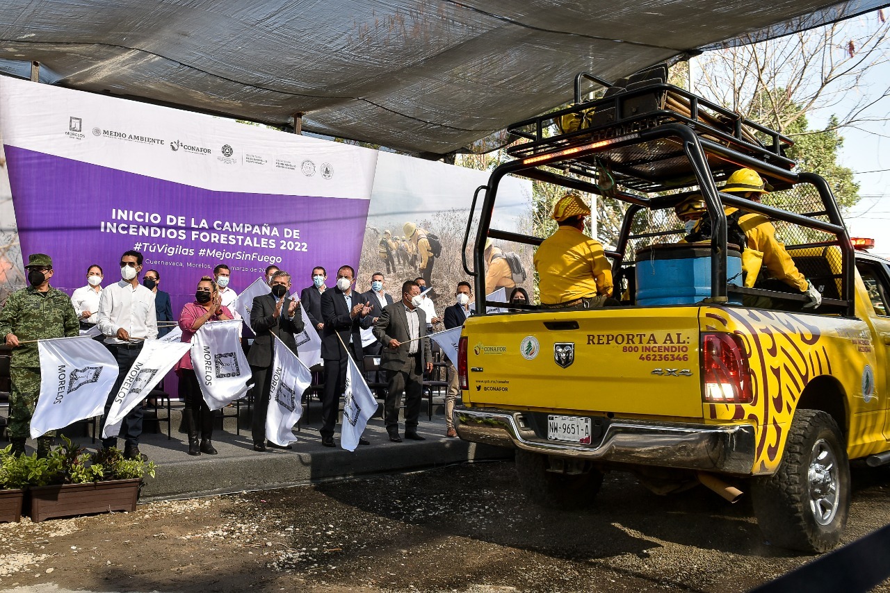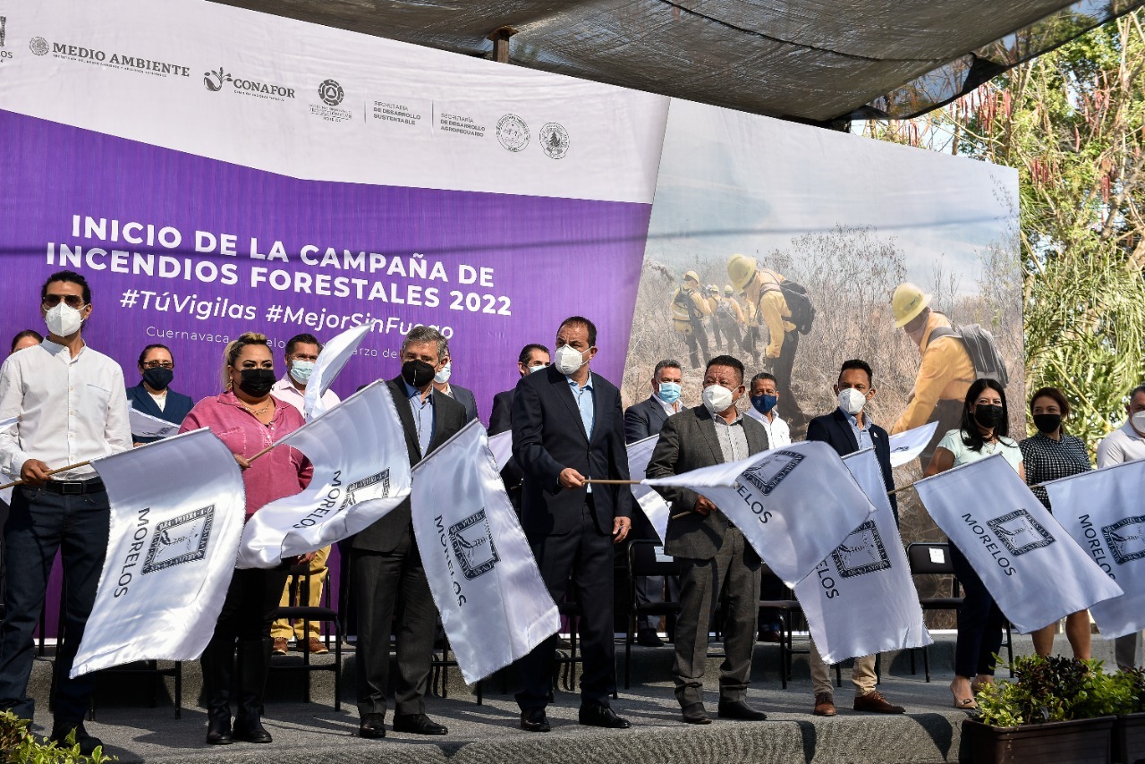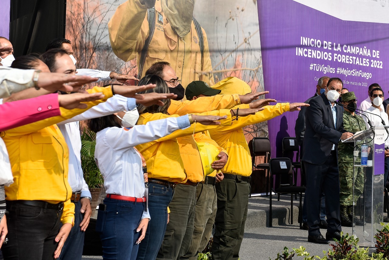 El Gobernador de Morelos dio inicio formal a la Campaña Estatal de Incendios Forestales 2022 ¡Tú Vigilas, mejor sin fuego!, donde hizo un llamado a la población a generar conciencia para prevenir y evitar este tipo de incidentes que dañan selvas y bosques, poniendo en riesgo la vida de quienes viven cerca de zonas vulnerables y de los combatientes forestales.