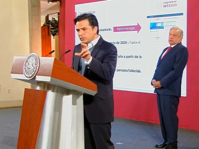 En conferencia en Palacio Nacional, el director del IMSS, Zoé Robledo, explicó que este miércoles en punto de las 09:00 horas se habilitará la página web www.deudoscovid.gob.mx para que las personas puedan hacer el respectivo registro para pedir el apoyo de más de 11 mil pesos.
