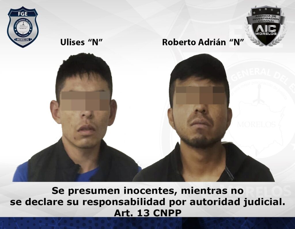 Detectives de la AIC realizaron la tarde de este domingo la detención de Roberto Adrián “N” y Ulises “N”, en el Callejón del Pochote de la colonia El Zapatito, en el municipio de Jojutla, y tras su certificación médica fueron puestos a disposición de la autoridad judicial que los requirió, y será en las próximas horas cuando se defina su situación jurídica.