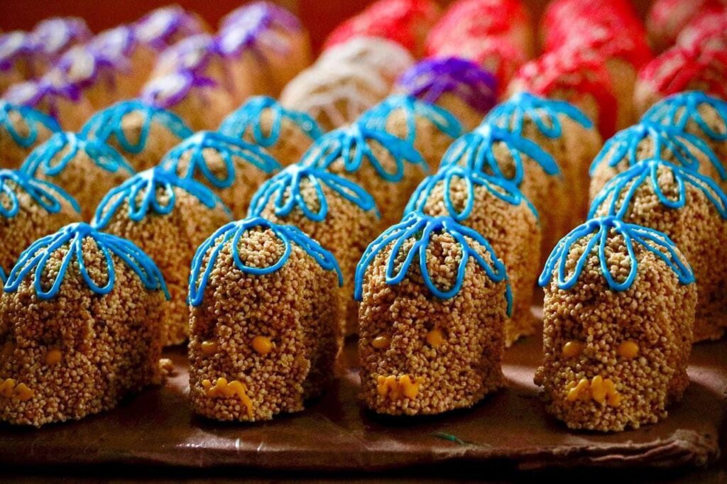 Como las calaveritas de amaranto, las cuales son utilizadas para decorar los altares y ofrendas como parte de la decoración de los hogares, su preparación ancestral de las manos de las y los productores morelenses, da forma al amaranto para verse de una manera extraordinaria.
