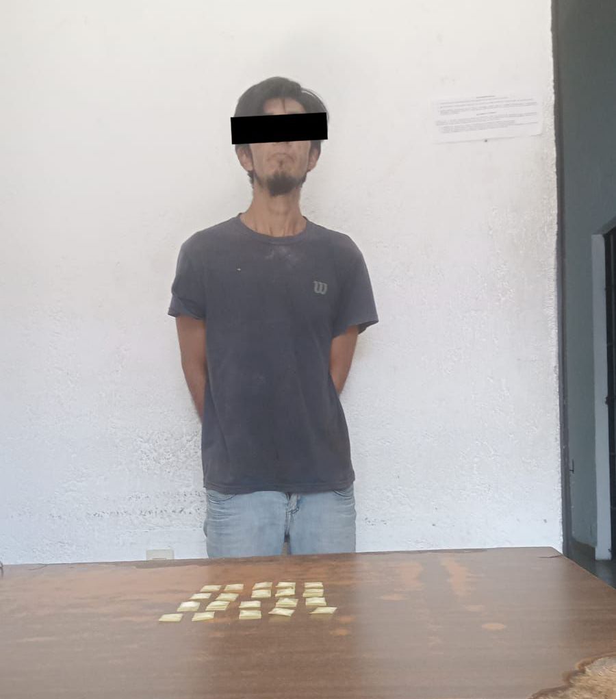 Fue al realizar recorridos de vigilancia en el fraccionamiento punta verde que se logró el aseguramiento de un masculino quien dijo llámese Gerardo “N”, quien los oficiales al identificarse plenamente como policía Morelos mostró una actitud agresiva verbal por lo que se le realizó una minuciosa inspección localizando en sus pertenencias aproximadamente 20 dosis de sustancia granulada con las características propias del cristal, por lo que fue trasladado y puestos a disposición de manera inmediata a las autoridades competentes.