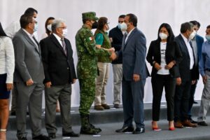 También Raúl Anaya Rojas, delegado federal para los Programas de Bienestar Social en Morelos; Inspector general Valentín Pedroza Gutiérrez, coordinador estatal de la Guardia Nacional; José Luis Urióstegui Salgado, presidente municipal de Cuernavaca, entre otras autoridades federales, estatales y municipales.