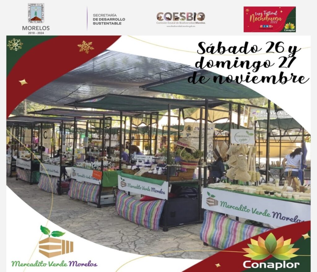 Como parte de las actividades de la Expo-Festival de Nochebuena que se realiza en las instalaciones de la Concentradora Nacional de Plantas Ornamentales (Conaplor), en la localidad de Casasano del municipio de Cuautla, la Secretaría de Desarrollo Sustentable (SDS), a través de la Comisión Estatal de Biodiversidad (Coesbio), llevará a cabo la cuarta edición del Mercadito Verde Morelos este 26 y 27 de noviembre, a fin de motivar el consumo responsable entre los visitantes.