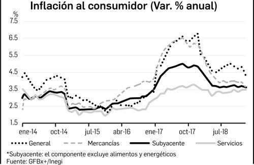 No obstante el desempeño reciente, la inflación se mantiene fuera de la meta del Banco de México, que es de 3 por ciento, con un intervalo de un punto porcentual más o menos.