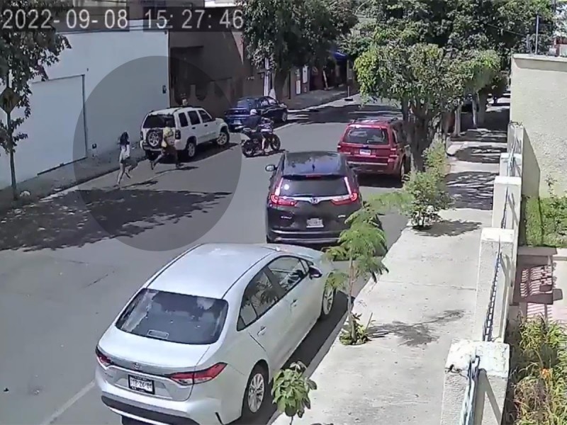 Una cámara de seguridad capturó el momento en el que una joven que fue asaltada por dos sujetos en calles de Guadalajara, Jalisco, se armó de valor y alcanzó a uno de los maleantes a quien jaloneó y golpeó.