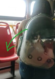 En el video se puede ver a las cuatro mujeres, dos de ellas madre e hija, discutiendo y peleando por el asiento en el metrobús, el gatito viajaba en una mochila transportadora.