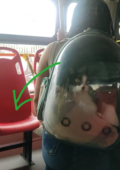 Ese gato diría: pero si había otra silla ahí al lado desocupada, vida hijuemadre y para colmo está maleta trasparente”, apunta otro de los usuarios de redes sociales.