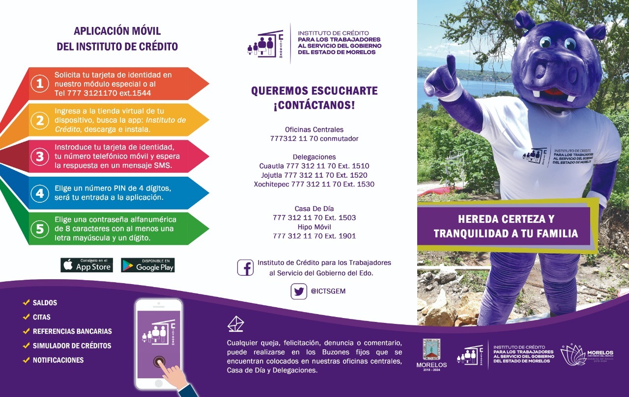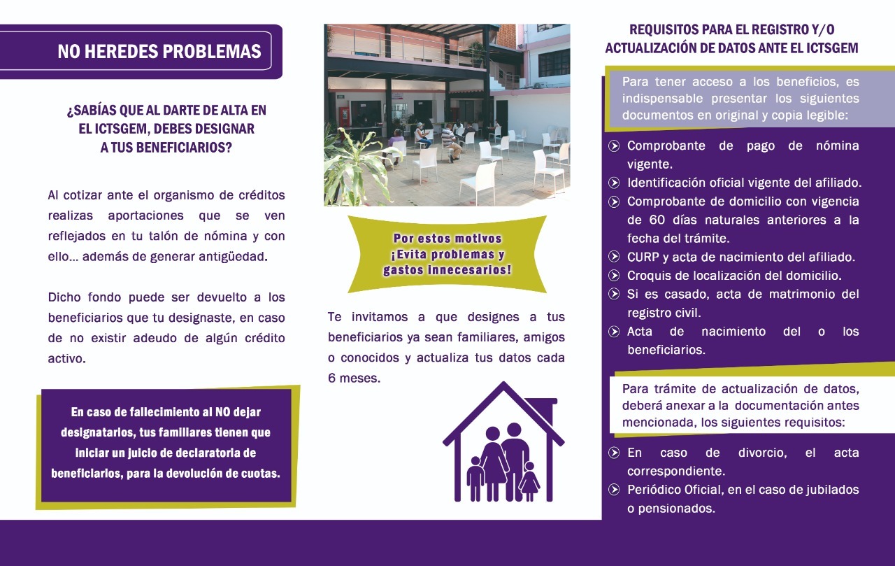 Autoridades del Instituto de Crédito para los Trabajadores al Servicio del Gobierno del Estado de Morelos (ICTSGEM) pusieron en marcha la campaña “Hereda Certeza y Tranquilidad a tu Familia”, con el propósito de que los afiliados actualicen sus datos y designen a los beneficiarios de sus aportaciones.