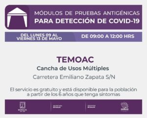 Realizarán pruebas antigénicas para detección de covid-19 en Temoac Navegación de entradas Realizarán pruebas antigénicas para detección de covid-19 en Temoac