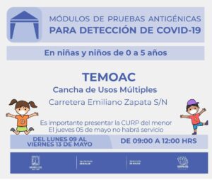 • Realizarán pruebas antigénicas para detección de covid-19 en Temoac