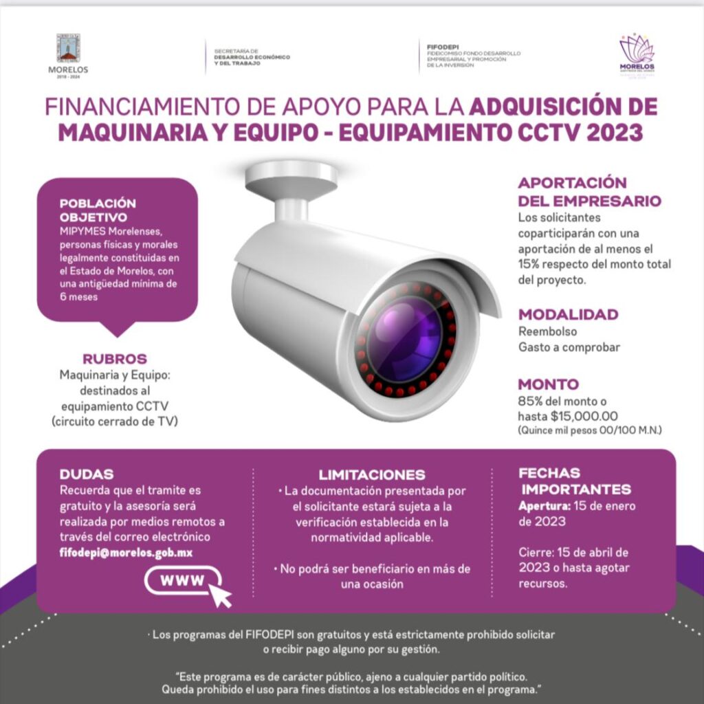 En este mismo sentido, destacó que desde el Fideicomiso Fondo Desarrollo Empresarial y Promoción de la Inversión (Fifodepi), se aperturó un programa dirigido al equipamiento relativo para cámaras de seguridad por una cantidad de hasta 15 mil pesos.