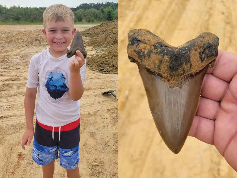 Riley Gracely, un niño de 8 años, vacacionaba junto a sus papás, Justin y Janelle, y su hermano Collin, se detuvieron en Palmetto Fossil Excursions, una instalación educativa de expedición de caza de fósiles en Summerville, California.