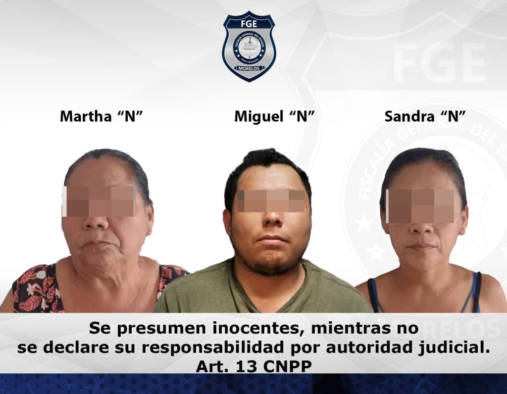 Al contar con las pruebas correspondientes, el Ministerio Público Especializado obtuvo de un Juez de Control orden de aprehensión en contra de los presuntos responsables del delito de feminicidio, mandato cumplimentado por elementos de la Agencia de Investigación Criminal (AIC) adscritos a la Fiscalía de Feminicidios, quienes realizaron la detención de Martha “N” de 59 años en la colonia Azteca del municipio de Temixco, y a Sandra de 40 años de edad en la colonia Tres de Mayo del municipio de Xochitepec.