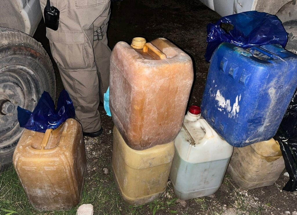 El Ministerio Público de la Fiscalía General de la República (FGR) en el Estado de Morelos, llevó a cabo un cateo en un predio en el municipio de Zacualpan de Amilpas, el cual era arrendado como bodega de resguardo de vehículos de herramientas y donde fueron asegurados ocho garrafas con un aproximado de 100 litros de hidrocarburo cada uno.