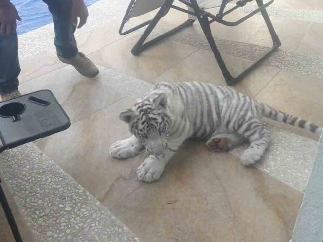 Personal de la Coordinación estatal de Protección Civil de Querétaro logró el aseguramiento de un cachorro de tigre blanco el cual fue hallado cuando deambulaba por calles de la ciudad capital.