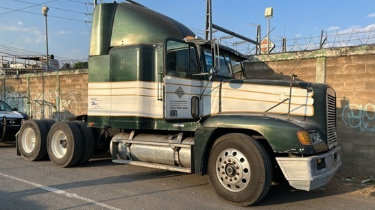 Asimismo, al circular sobre la carretera Cuautla-Cuernavaca de la colonia San Francisco Texcalpan en el municipio de Jiutepec, los oficiales tuvieron a la vista un tractocamión de la marca Freightliner de color verde, modelo 2003 con placas Federales 49AZ9Z, el cual se encontraba con la puerta del conductor abierta y mal estacionado.