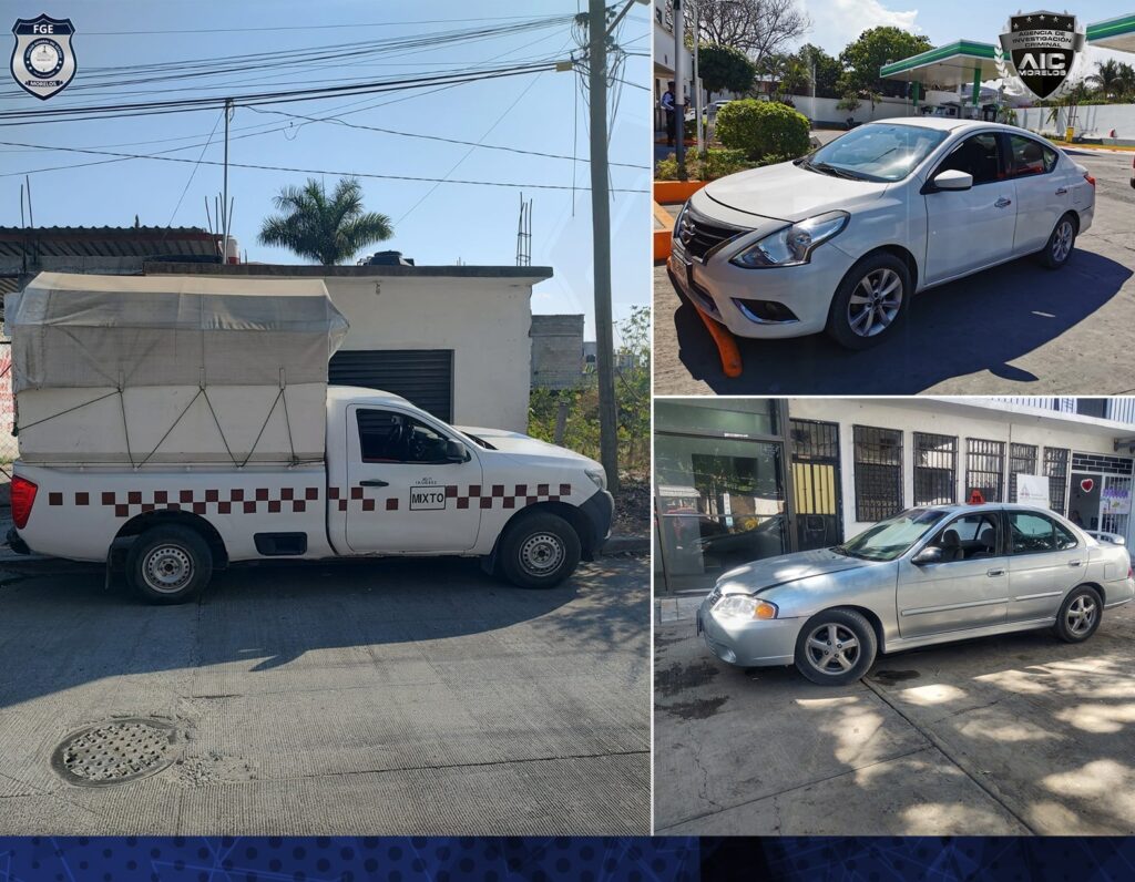 Agentes de Investigación Criminal (AIC) adscritos a la Fiscalía Regional Sur Poniente recuperaron tres vehículos de procedencia ilícita, en los municipios de Zacatepec y Jojutla.