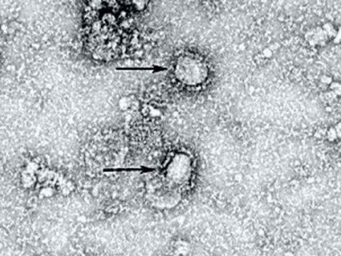 En la imagen destacan dos pequeñas manchas que forman parte de la estructura del virus mortal.