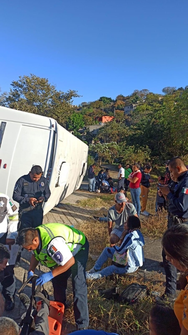 Personal del Heroico Cuerpo de Bomberos en Temixco atendieron esta mañana la volcadura de una ruta 11 económico 32 a la altura de Punta Verde en calle Orquídeas colonia Lauro Ortega donde fueron atendidas 6 personas y un menor de edad.