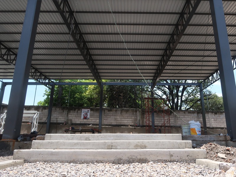 Al momento, esta área deportiva cuenta con un avance del 80 por ciento, lo que incluye el desmontaje de techumbre de lámina que será sustituida por una nueva demolición de piso para el mejoramiento del material con tepetate; así como la construcción de guarniciones y delimitación de andadores, remodelación de fachada principal y aplicación de acabados.