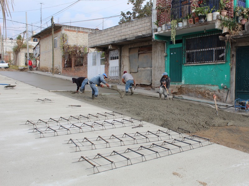 Las labores realizadas en estas calles constan de trazo y nivelación, excavación en caja, carga mecánica, acarreos, base hidráulica, pavimentación con concreto premezclado y construcción de guarniciones de concreto hidráulico. Al momento dichas obras cuentan con un avance del 90 por ciento de su totalidad.