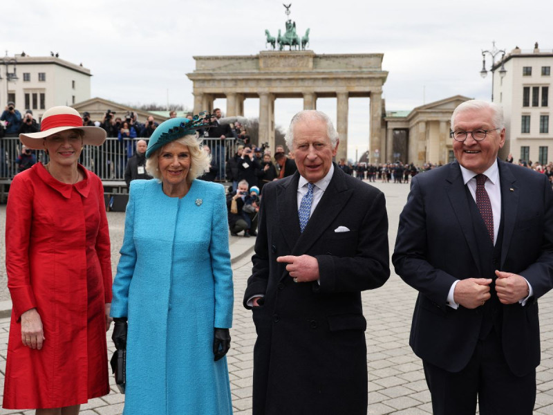 Carlos, acompañado por su esposa Camila, aterrizó en el aeropuerto Internacional de Berlín-Brandeburgo hacia las 13:50 horas locales. En un principio estaba previsto que la pareja real visitara Francia antes de Alemania, pero el viaje tuvo que cancelarse debido a las manifestaciones contra una impopular reforma de las pensiones que sacuden al país.