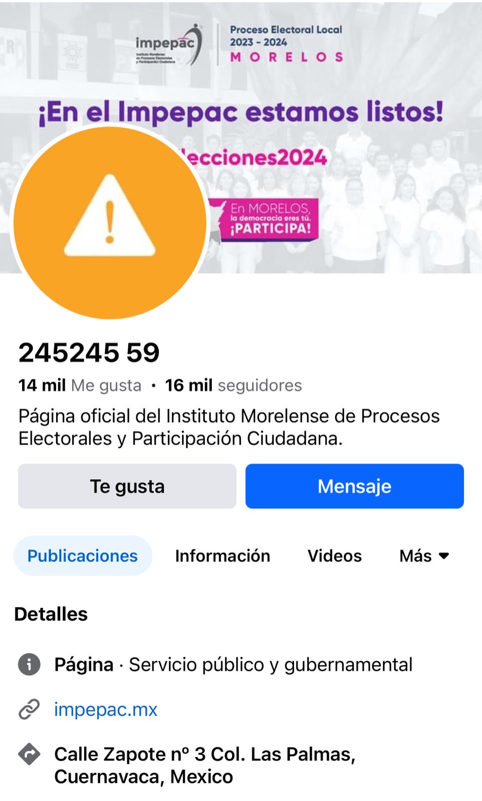 Ante la vulneración de la página de Facebook ocurrida la mañana de este martes el Instituto Morelense de Procesos Electorales y Participación Ciudadana (Impepac) informa lo siguiente: