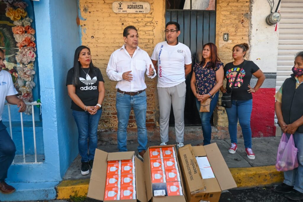 Durante una jornada matutina de trabajo, en la que estuvieron presentes Julio Ignacio Flores Morales, presidente del Consejo de Participación Social de Mina 5 Chipitlán y la regidora Paz Hernández Pardo, el diputado entregó 10 luminarias, para luego dar inicio a los trabajos de instalación, que estuvieron a cargo de las secretarías de Desarrollo Sustentable y Servicios Públicos y de Alumbrado Público del municipio de Cuernavaca.