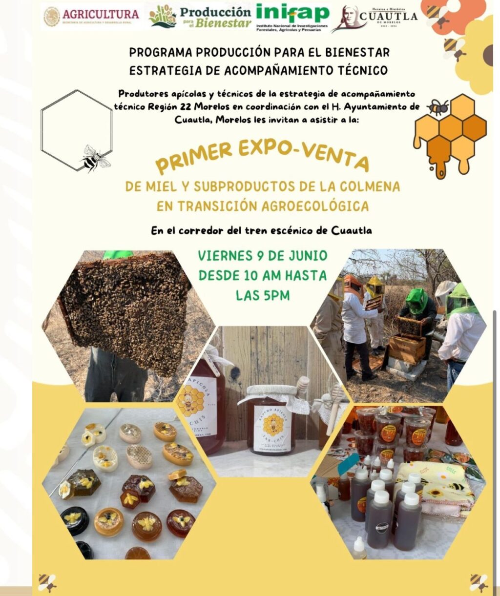 En conferencia semanal, el alcalde de Cuautla, Rodrigo Arredondo, anunció la primera Expo- Venta de Miel y sub productos de la Colmena que realiza en coordinación con productores apícolas técnicos de la Estrategia de Acompañamiento Técnico Región 22 Morelos, el próximo viernes 09 de junio desde las 10:00 hasta las 17:00 horas en los patios del Tren Escénico.