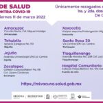 Con respecto a la Jurisdicción Sanitaria II de SSM, las brigadas aplicarán la dosis en Amacuzac, Circuito Norte, colonia Miguel Hidalgo; en Jojutla, estarán dos centros, uno en Tehuixtla, calle Ignacio Zaragoza, número 110 y el segundo ubicado en avenida Universidad, sin número, colonia Centro.
