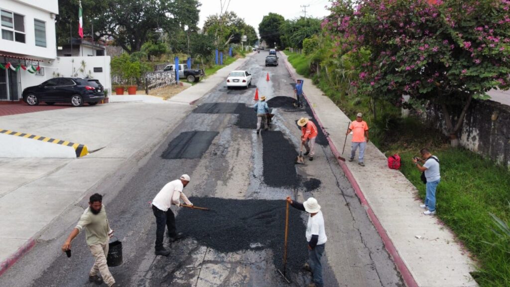 Por instrucciones del presidente municipal de Jiutepec, Rafael Reyes, personal de la Dirección de Superintendencia del Gobierno con Rostro Humano continúa con los trabajos de mantenimiento de la carpeta asfáltica de diferentes calles y vialidades del municipio.