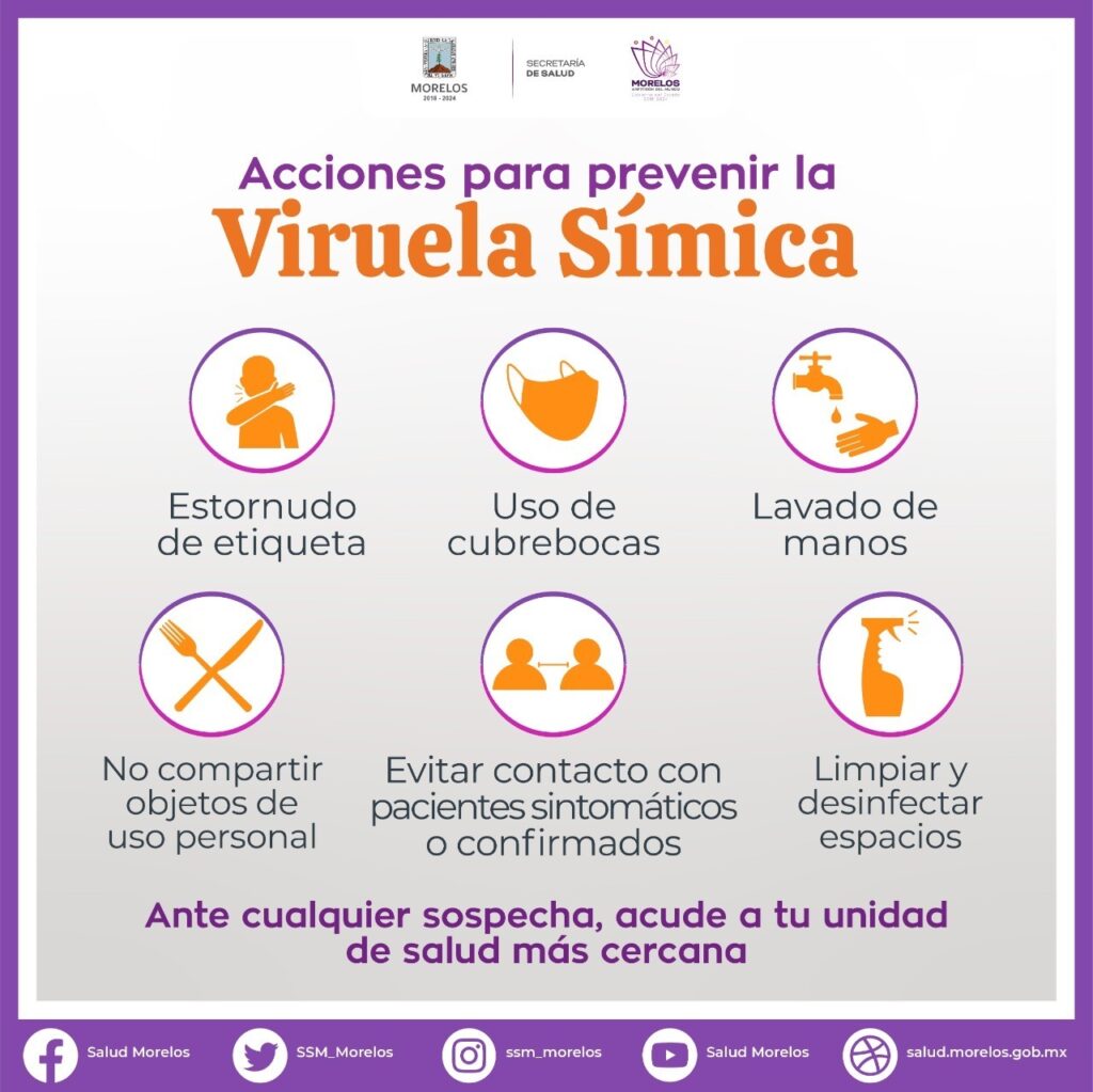 El Gobierno estatal informó que la Secretaría de Salud, a través de Servicios de Salud de Morelos (SSM), mantiene acciones de vigilancia epidemiológica para detectar y atender de manera oportuna pacientes con sintomatología de viruela símica.