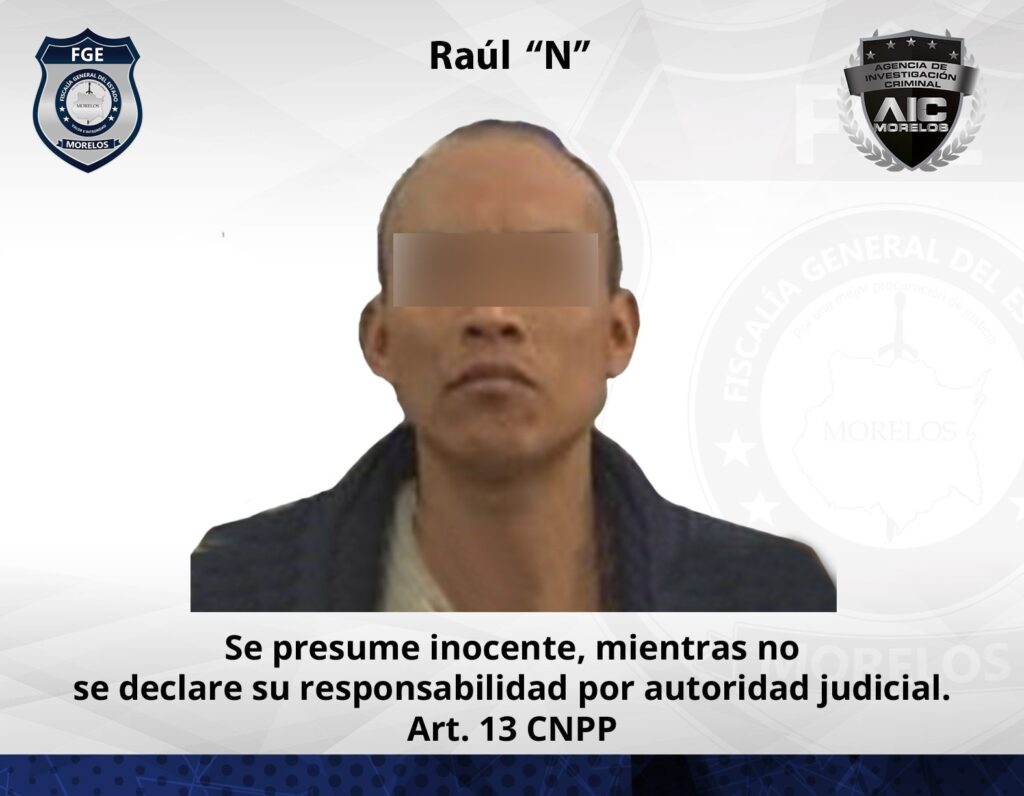 Los agentes investigadores lograron la aprehensión de Raúl “N”, de 33 años de edad, vecino de la colonia Centro, de Tehuixtla, al ubicarlo en la cabecera municipal de Jojutla.