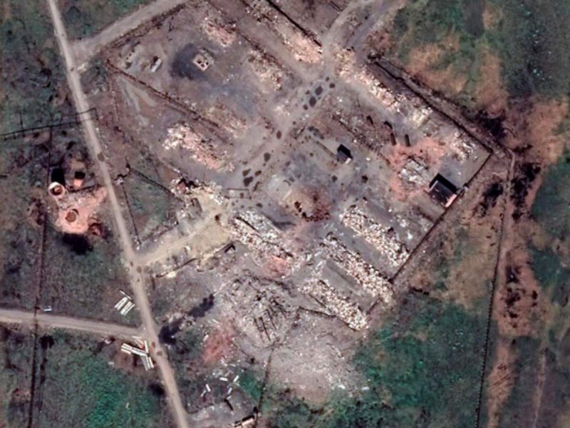 Las imágenes satelitales muestran el suelo hueco donde los edificios deconstruidos yacen en montones de escombros grises.