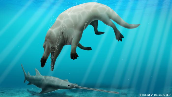 Arqueólogos egipcios descubrieron el fósil de una nueva especie de ballena anfibia que surcaba las aguas con ayuda de sus cuatro patas hace 43 millones de años en Fayum, al sur de El Cairo, indicó un miembro del equipo.