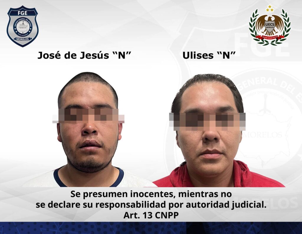 Resultado de los actos de investigación de campo y gabinete se logró establecer la identidad de dos probables responsables como José de Jesús “N”, alias “Saladas” y Ulises “N”, quienes la tarde de este martes, fueron aprehendidos en la colonia La Joya de Yautepec y Antonio Barona de Cuernavaca, respectivamente.