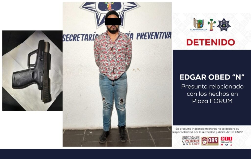 El detenido de nombre EDGAR OBED «N» de 36 años de edad, quien portaba un arma de fuego calibre 9mm; fue trasladado a las instalaciones de la SEPRAC para realizar el IPH correspondiente, y presentar ante la Fiscalía General de la República (FGR) para hacer el proceso correspondiente.