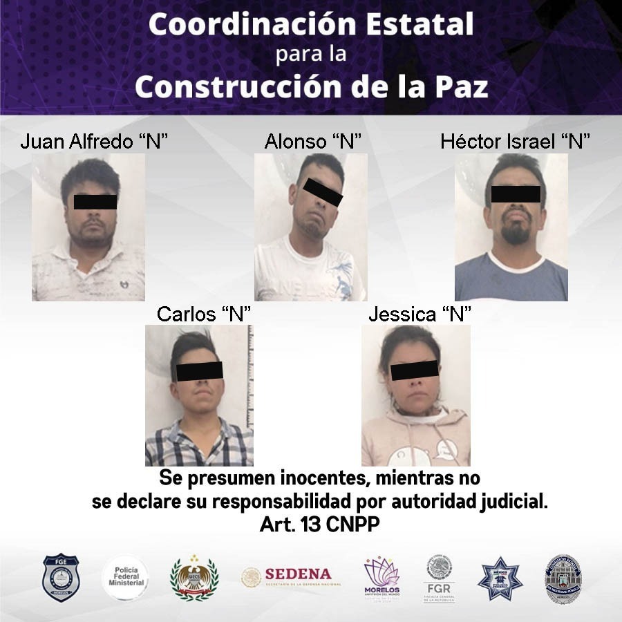 Elementos que integran la Estrategia de Seguridad Mando Coordinado Policía Morelos detuvieron a cinco hombres entre ellos un adolescente y una mujer por su presunta responsabilidad en los delitos de allanamiento de morada, despojo y/o lo que resulte, en el municipio de Yautepec.