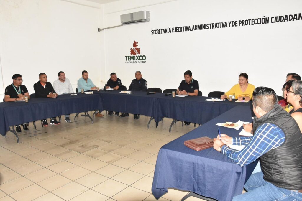 En la reunión estuvieron presentes el titular de la Secretaría Ejecutiva, Administrativa y de Protección Ciudadana Capitán en Retiro Rubén Sánchez Rivera, la secretaria de Bienestar Social Mtra. Natividad Tapia Castañeda, la Oficial Mayor M. en D. Itzel Tlali Zúñiga, el secretario de Servicios Públicos Mauricio Rodríguez Luqueño, el secretario de Obras Públicas Ing. Jorge Antonio Bahena García, el secretario de Regularización de Tenencia de la Tierra Lic. Noel Salgado Mora, el encargado de Despacho de la Secretaria de Desarrollo Sustentable Bernardo Flores Mojica, en representación del Secretario de Desarrollo Económico Silverio Orihuela Ortega estuvo presente Lic. Omar Velediaz Flores, el director de Fomento Empresarial Sosimo Olvera, del Sistema Integral para el Desarrollo de la Familia (DIF) Temixco, el director del Sistema de Agua Potable y Saneamiento de Agua de Temixco (SCAPSATM) Arq. Porfirio Guerrero Arcos.