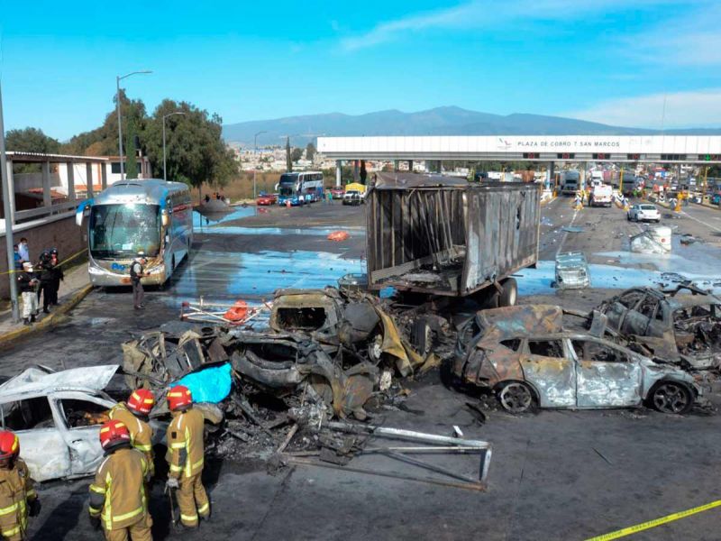 Precisó que el accidente ocurrió cuando “al cruzar por la caseta, el camión arrastra a seis vehículos, generando el deceso de 19 personas y 3 lesionados”.