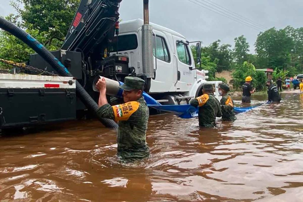 En los municipios de Calakmul, Campeche y Yaxcabá, Yucatán, el personal militar ha realizado trabajos de remoción de escombros, desazolve, desalojo de muebles en viviendas afectadas por inundaciones.