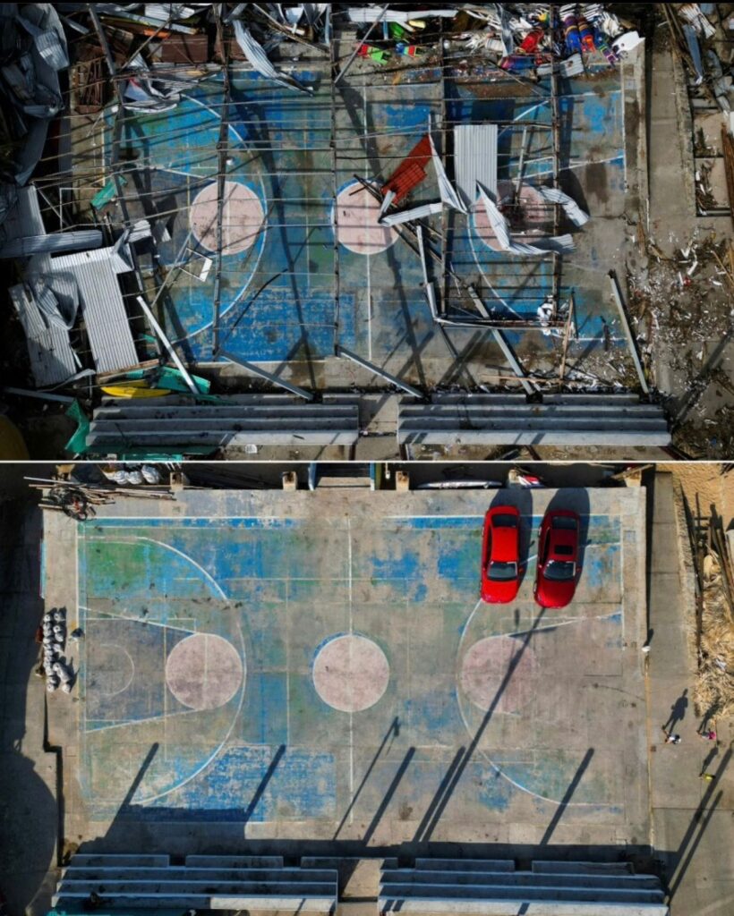 Aunque se observa cierta recuperación en algunos sitios con la reconstrucción en marcha, la magnitud de la destrucción sigue siendo evidente.