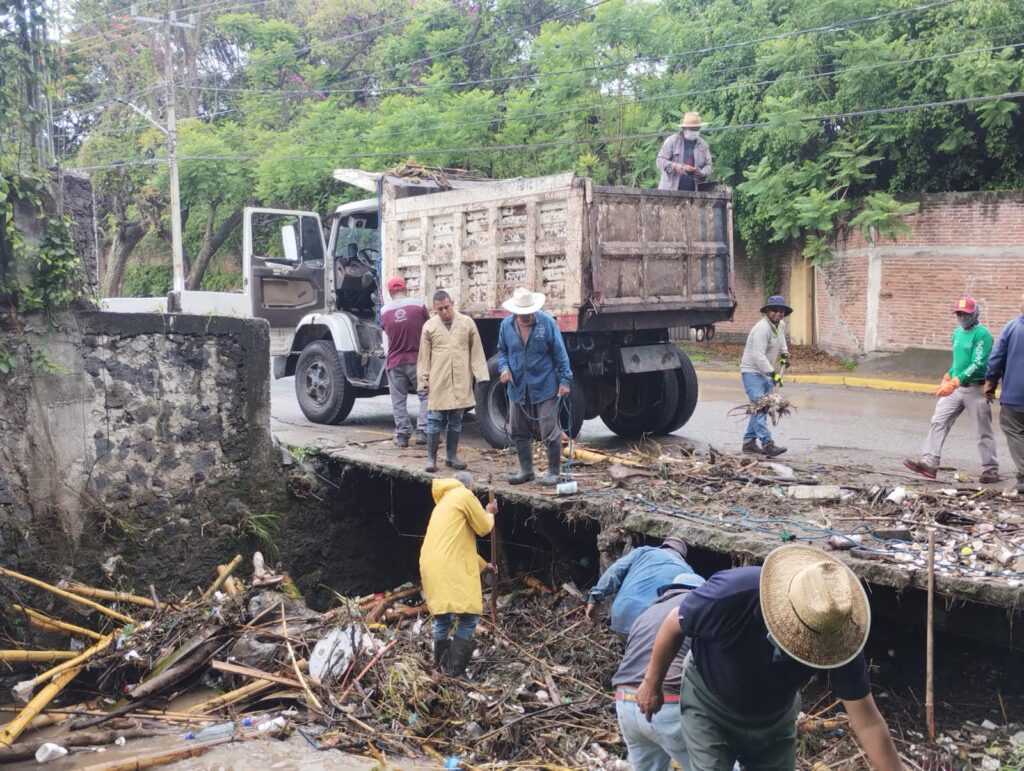 Tras el reporte del taponamiento en la barranca «La Gachupina», ubicada en la Colonia Pedregal de las Fuentes, en Jiutepec, personal del ayuntamiento y Protección Civil acudieron a realizar trabajos de limpieza.